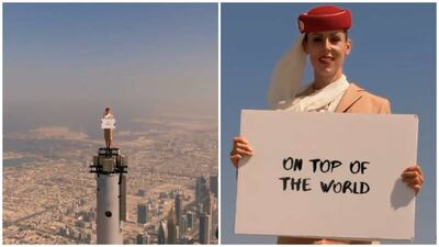 Emirates 'flight attendant' stands atop Burj Khalifa to celebrate UK travel rules change